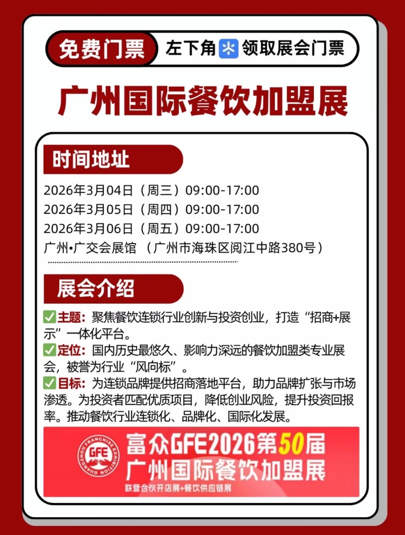 2026-02-27 展会动态 #展会 #餐饮展会 0 评论 0 喜欢 分享 远方的田野 这个人很懒,还没有简介 查看TA的全部内容 +关注 举杯云展会 去发现更多有趣内容 微信扫码打开举杯云展会小程序 体验更多「举杯云展会」新功能 评论 0 我也来讲两句